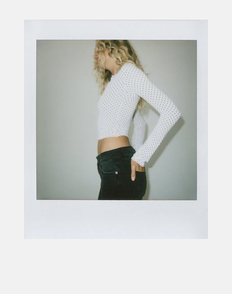 Delano Top in White with Micro Polka Black Print