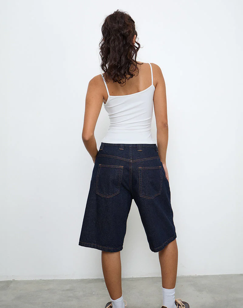 The Jasila top features a regular length bodycon fit with a scoop neckline and thin straps. In a white jersey fabric. Pair with our Skater Shorts.