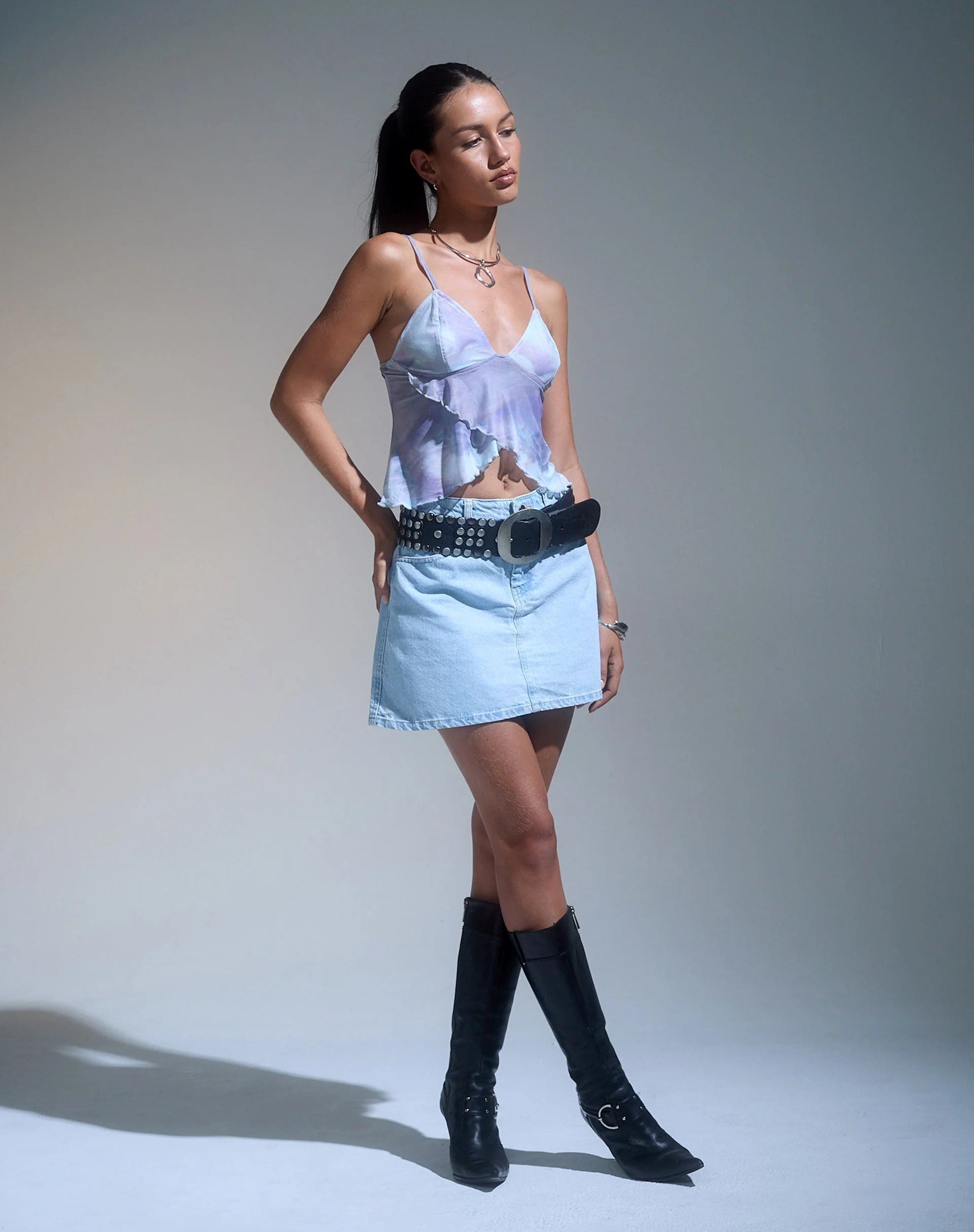 Mini A-Line Skirt in Denim Blue Bleach