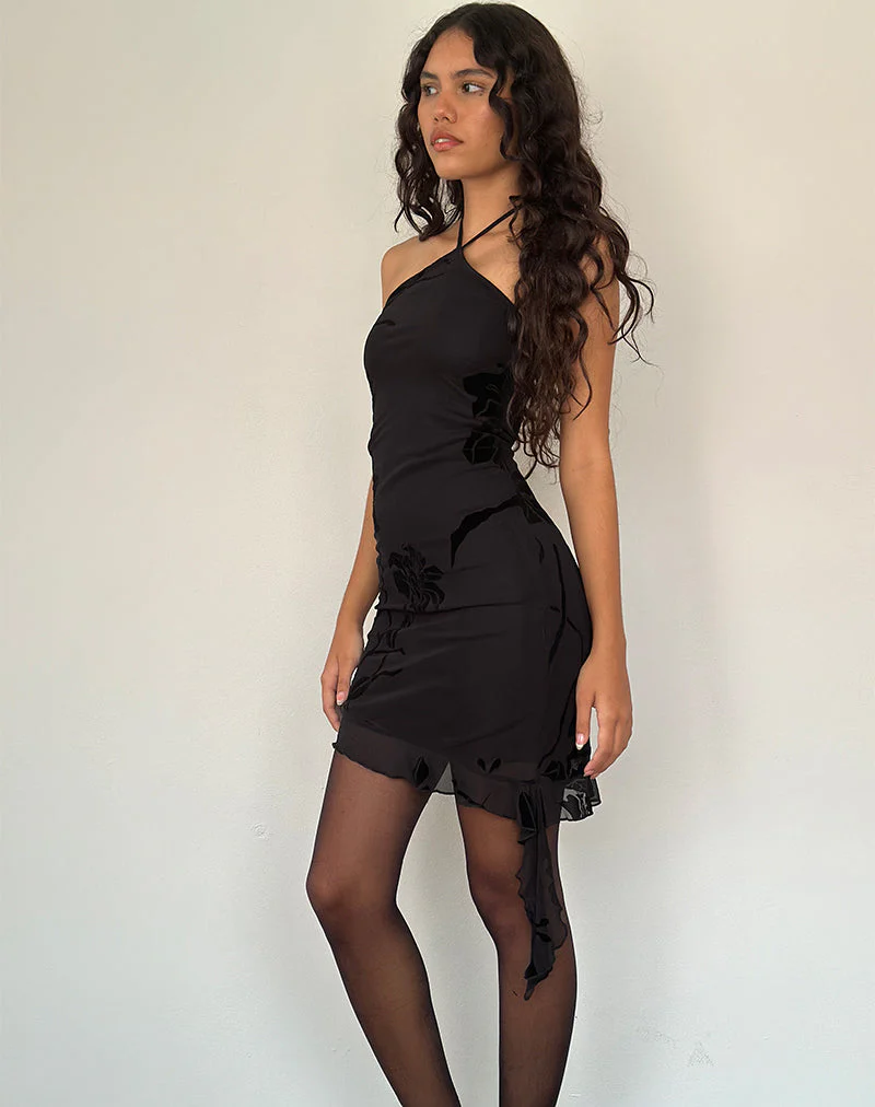Redi Mini Halterneck Dress in Orchids Flock Black