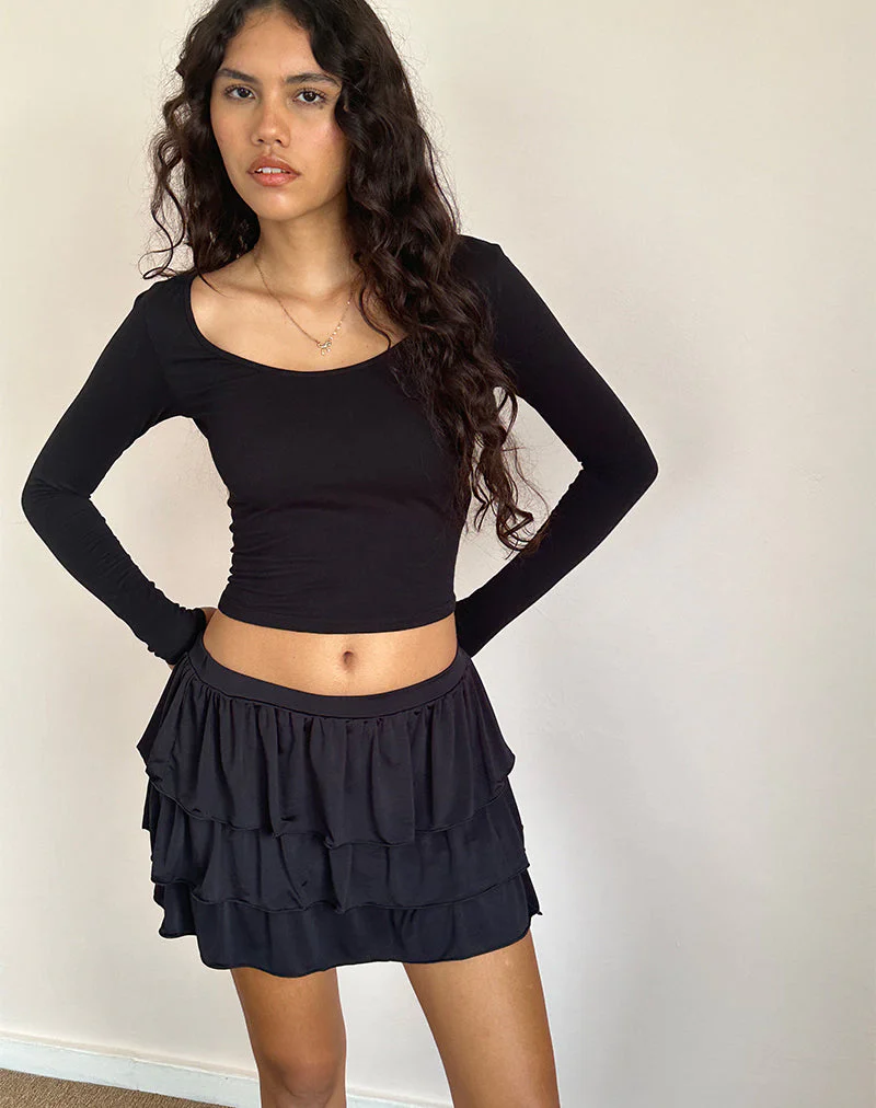 Sefone Tiered Mini Skirt in Slinky Black